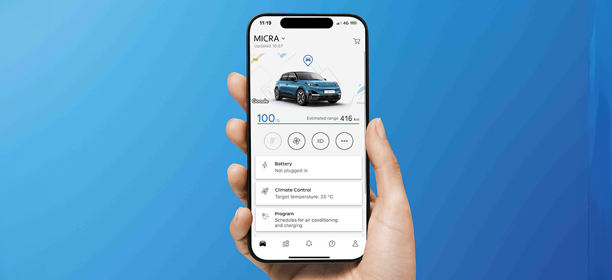 Juhtige oma auto seadeid nutitelefonist: leidke oma Nissan MICRA parklas, seadistage mugav temperatuur sõidu alustamiseks, alustage laadimist eemalt ja säästke isegi oma arveid, laadides väljaspool tipptunde.¹²