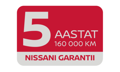 5-aastane / 100 000 km garantii koosneb 3-aastasest/100 000 km tootja garantiist ja 2-aastasest Nissan RG pikendatud garantiist, mida pakutakse kindlustustootena Real Garant Versicherung AG poolt. Täieliku info Nissan RG pikendatud garantii katvuse ja sisu kohta leiate pikendatud garantii tingimustest nissan.ee lehelt või lähimast Nissani esindusest.