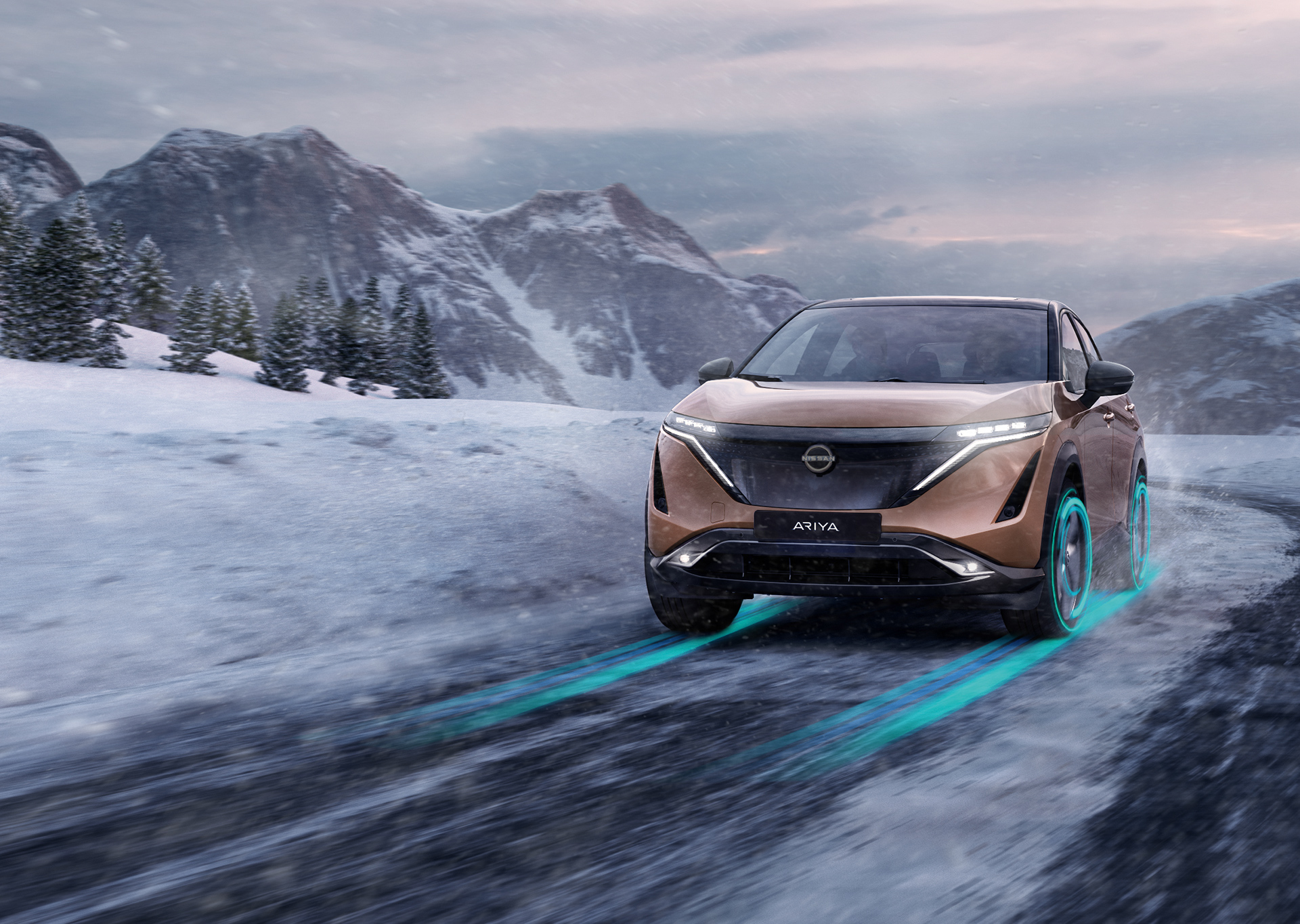 On väga vähe asju, mis suurendaks juhi enesekindlust nii palju kui teadmine, et juhitavus säilib ka siis, kui teedel on vihm, jää ja lumi. Nelikveosüsteemi e-4ORCE täiustatud jõuülekande- ja pidurdustehnoloogiad jälgivad ning juhivad iga ratast eraldi, et Nissan ARIYA saaks alati parimat juhitavust pakkuda. Tänu sõiduki suuremale stabiilsusele tunnete roolis, et kõik on teie kontrolli all. Olgu väljas kas või tuisk ja torm.