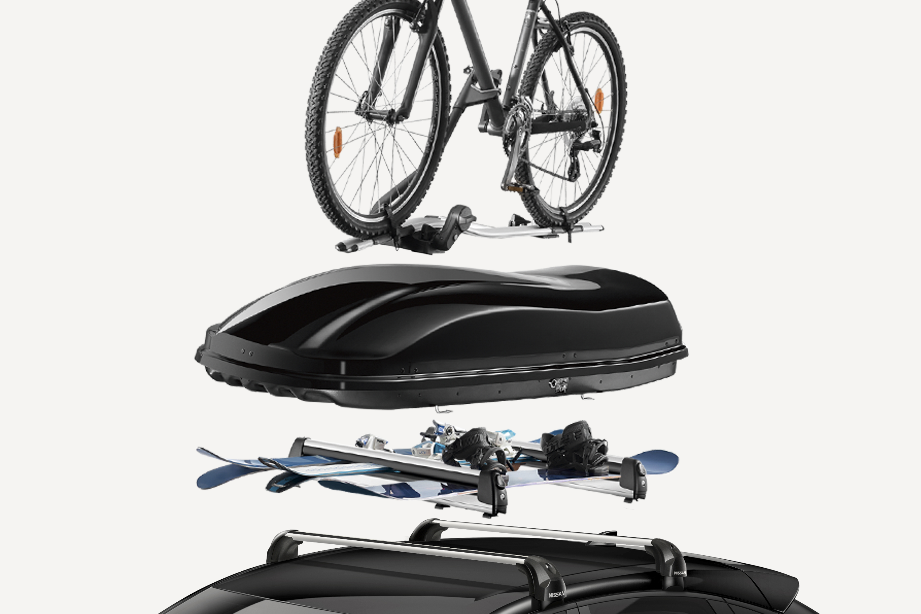 Pange oma Nissan ARIYA mägedeks valmis. Suusahoidikusse mahub kuni 6 suusapaari ja sellel on libistatav katuseraami adapter.