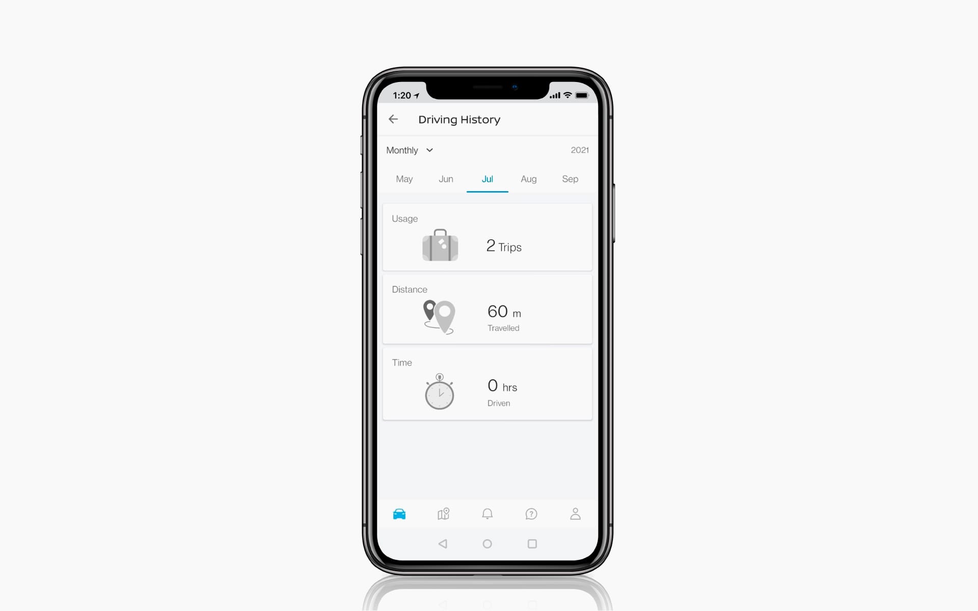 Rakendus NissanConnect Services peab arvet tehtud sõitude, läbisõidu ning sõiduaja üle. [2, 3]