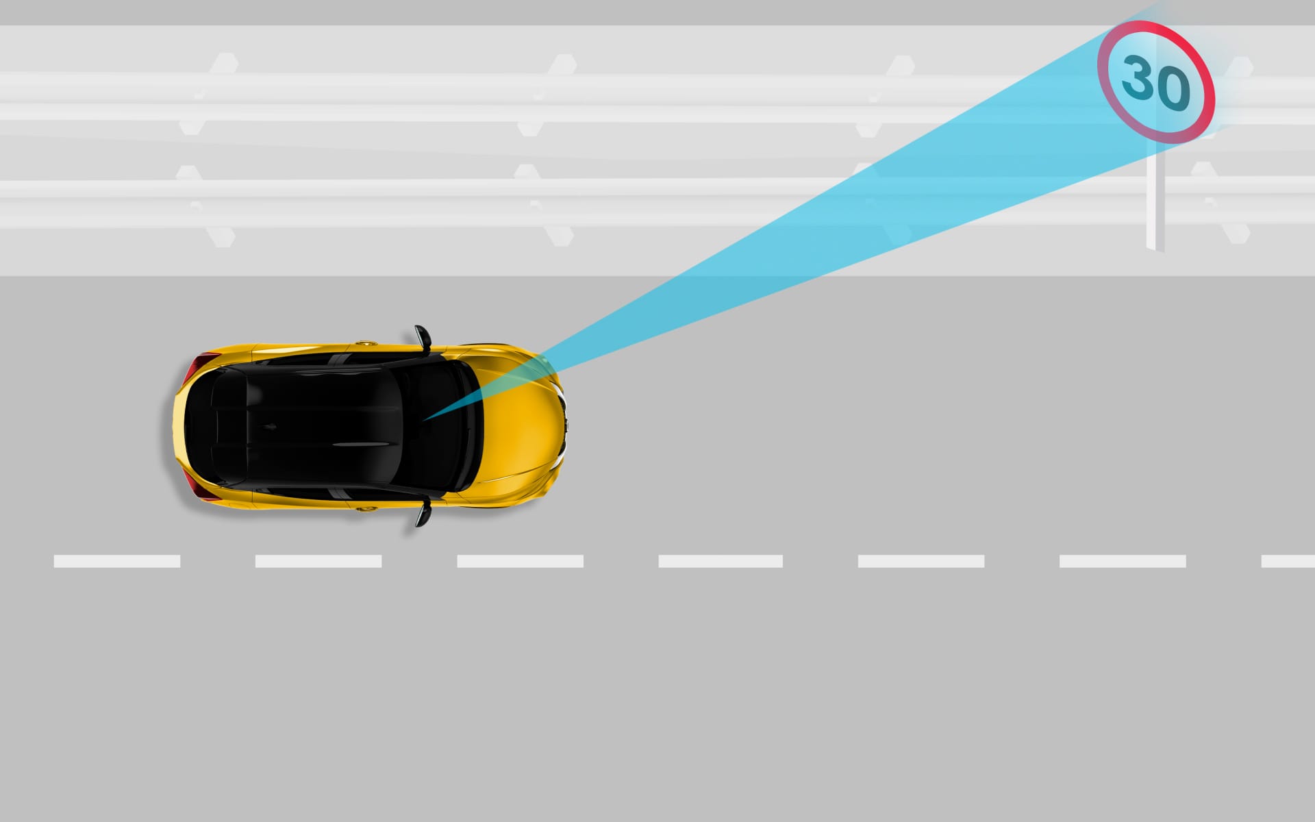 Liiklusmärkide tuvastussüsteem jälgib sõidu ajal liiklusmärke ning kuvab kehtiva kiiruspiirangu. [2]